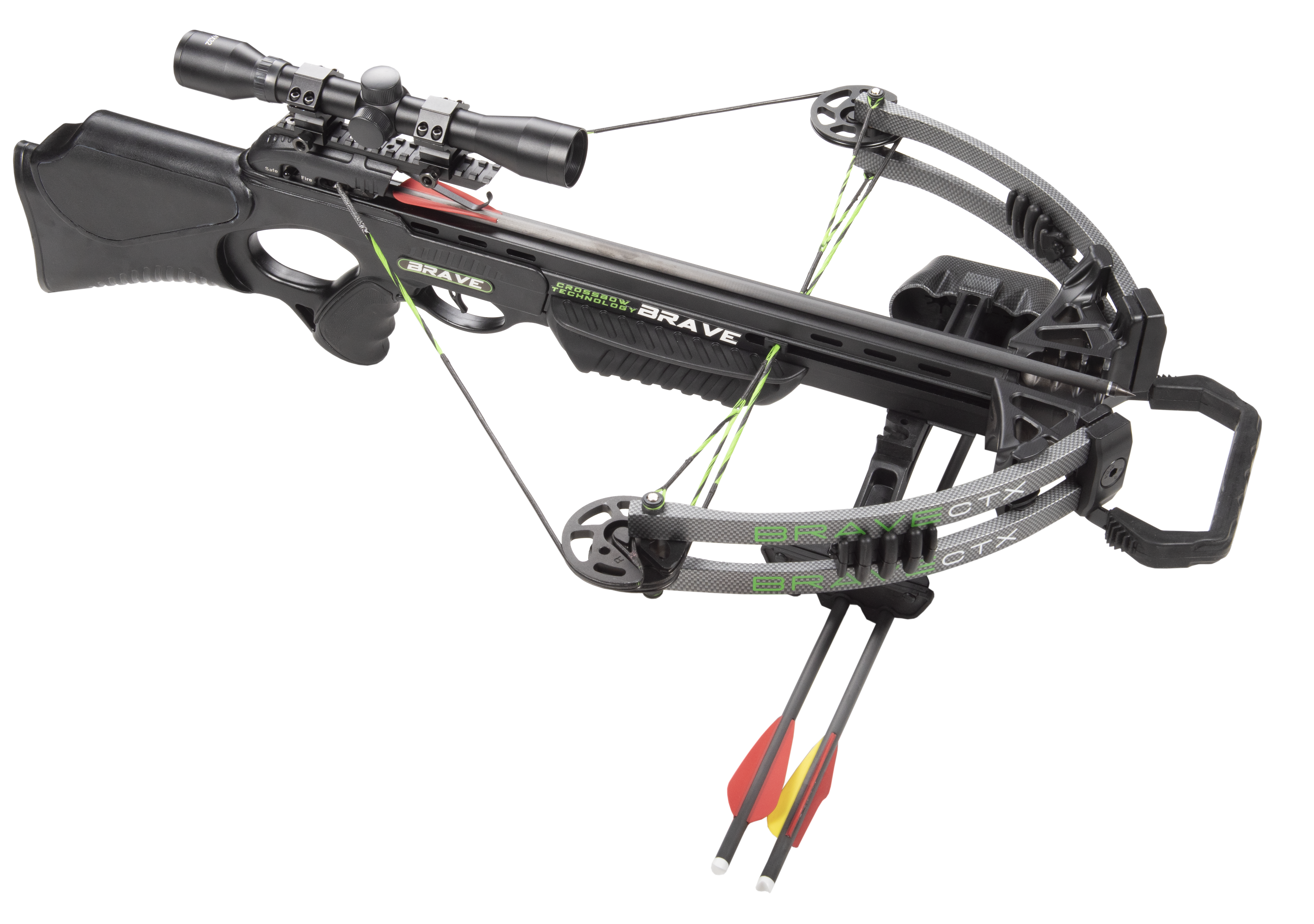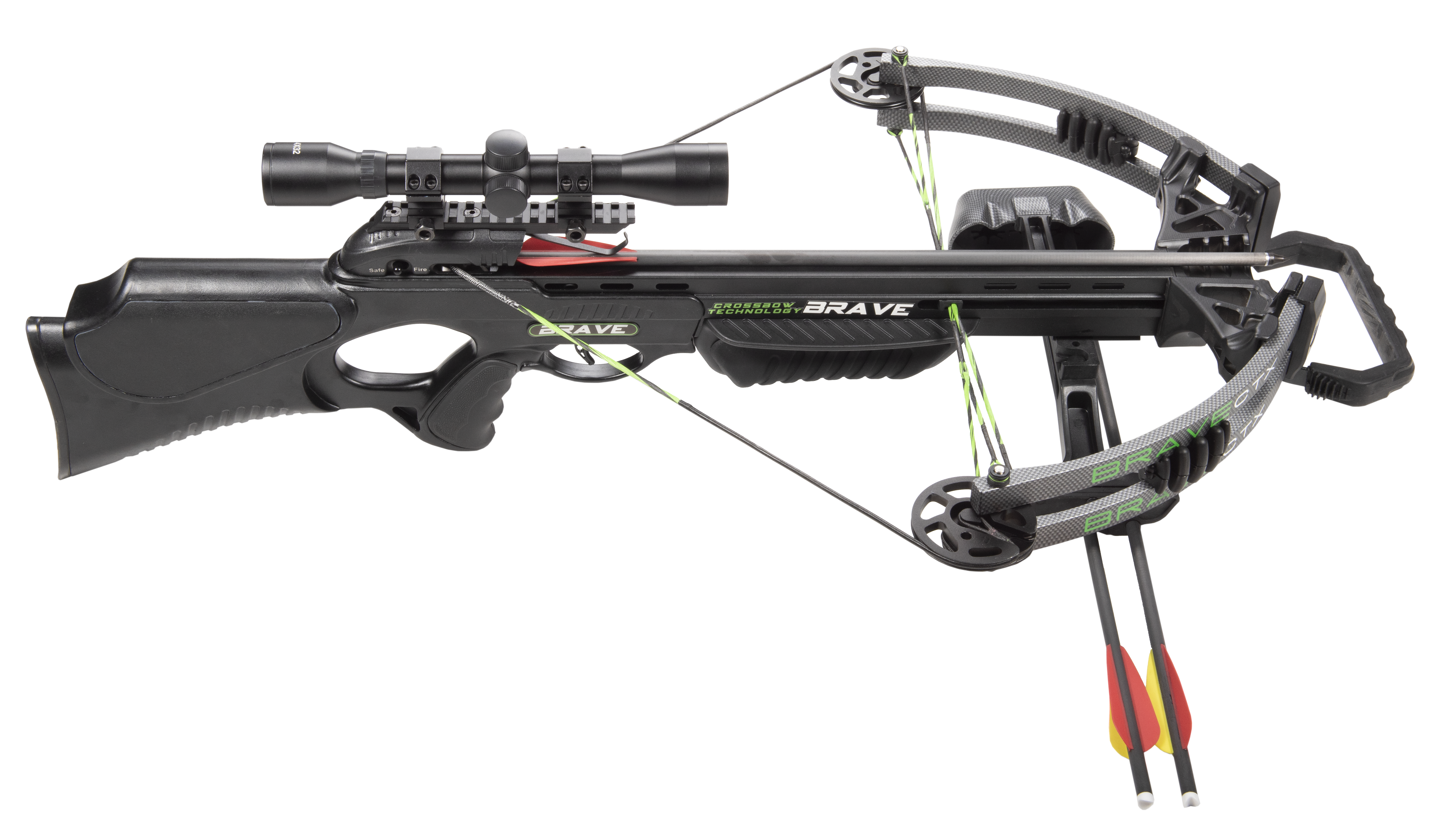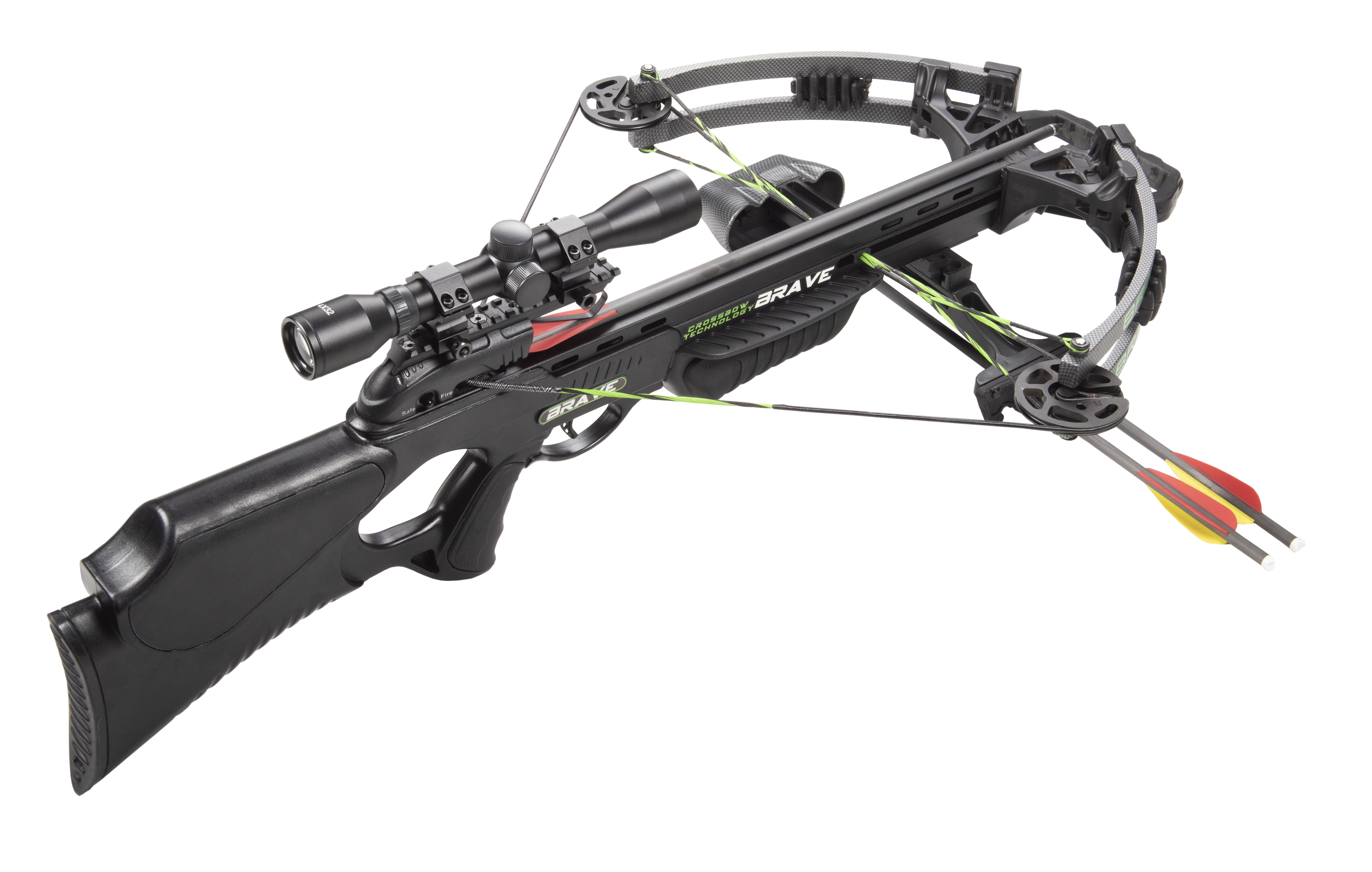 Das enthaltene 4x32mm Zielfernrohr mit Multi-Reticle-Absehen ermöglicht eine zuverlässige Zielerfassung auf verschiedene Distanzen. Als Komplettset geliefert, eignet sich die Brave Black sowohl für Einsteiger als auch für erfahrene Schützen, die eine einsatzbereite Armbrust suchen.