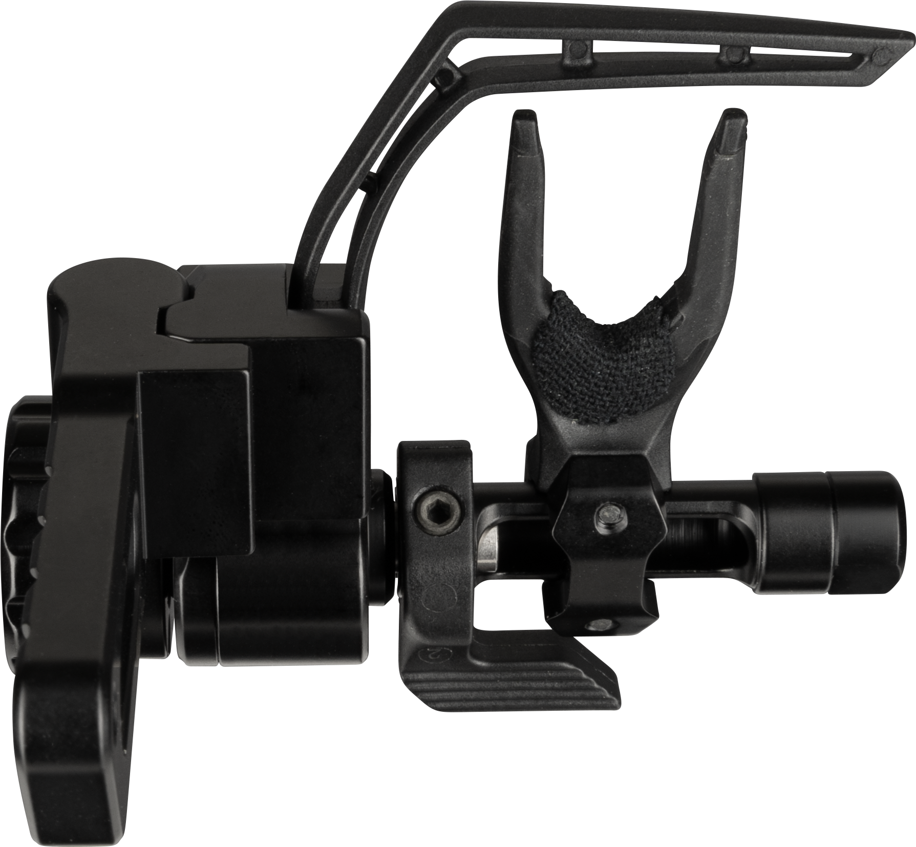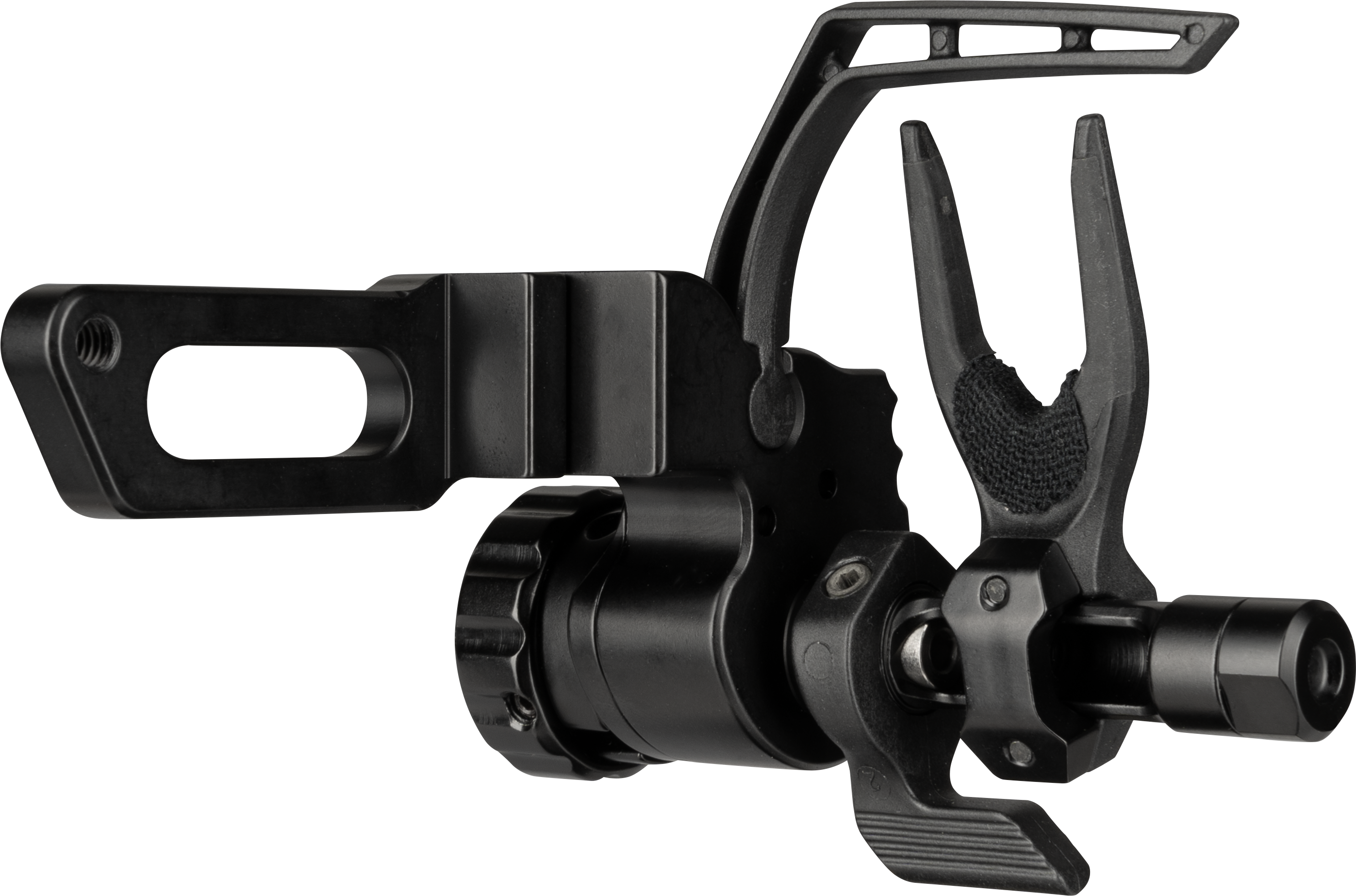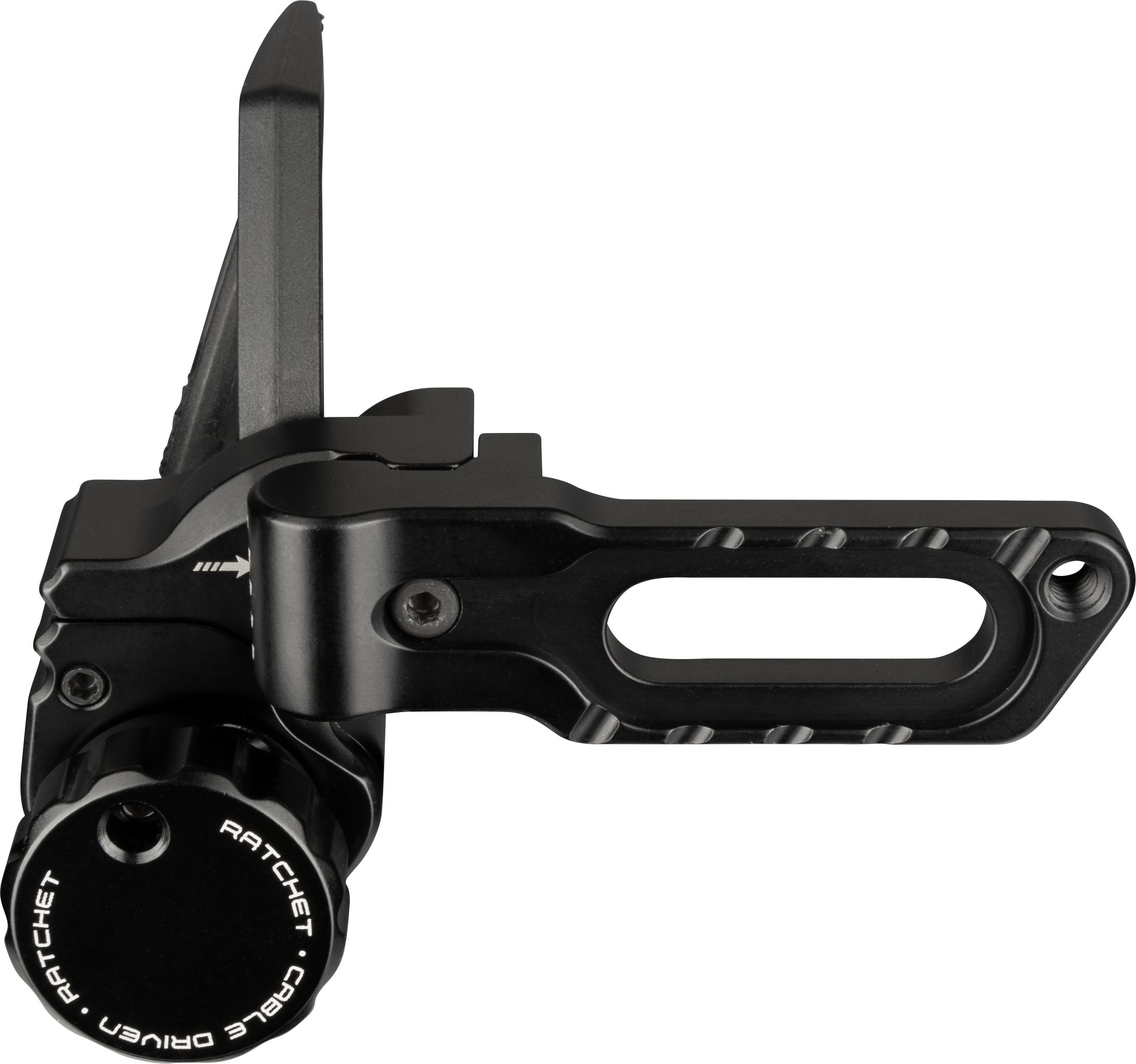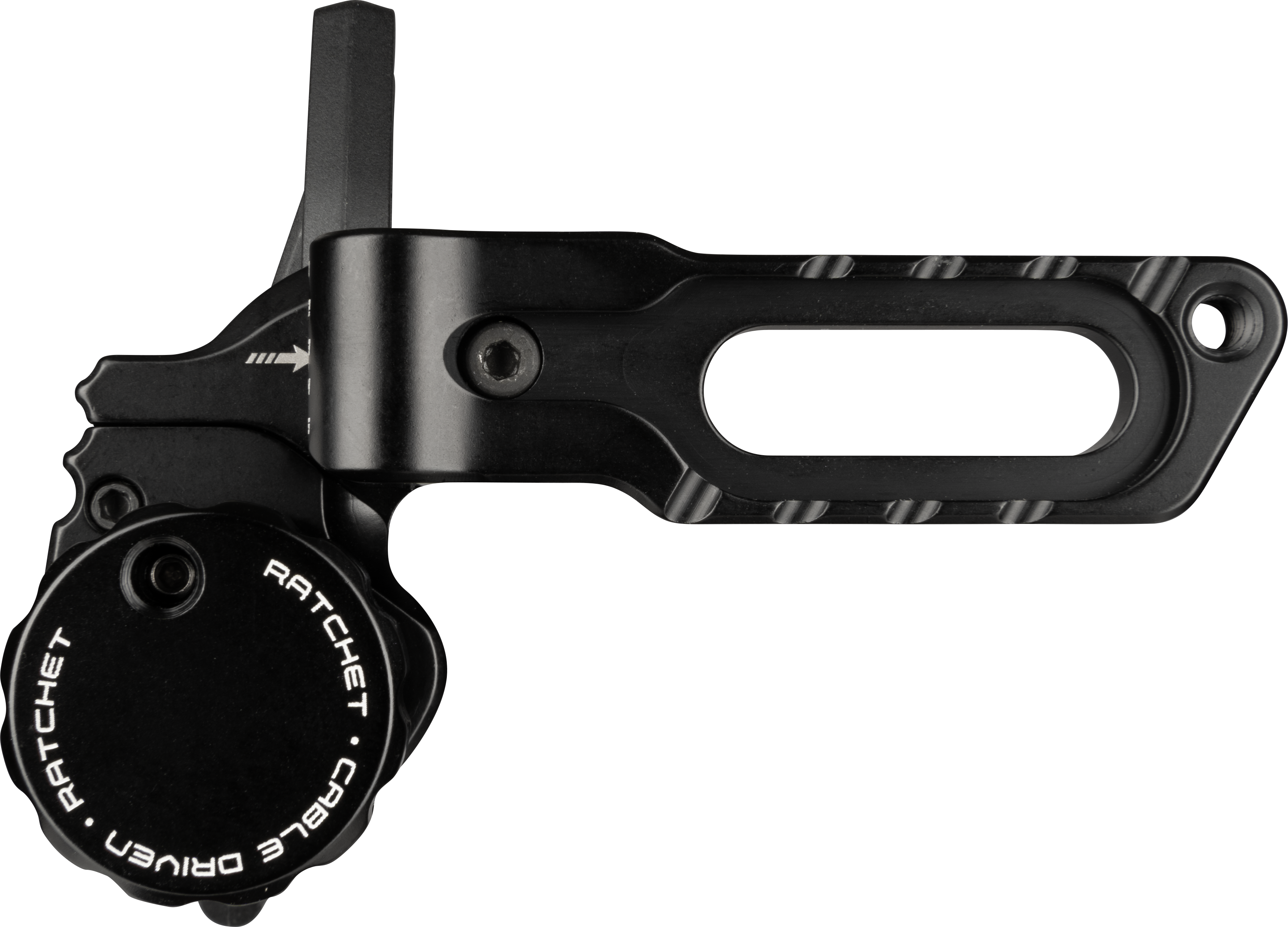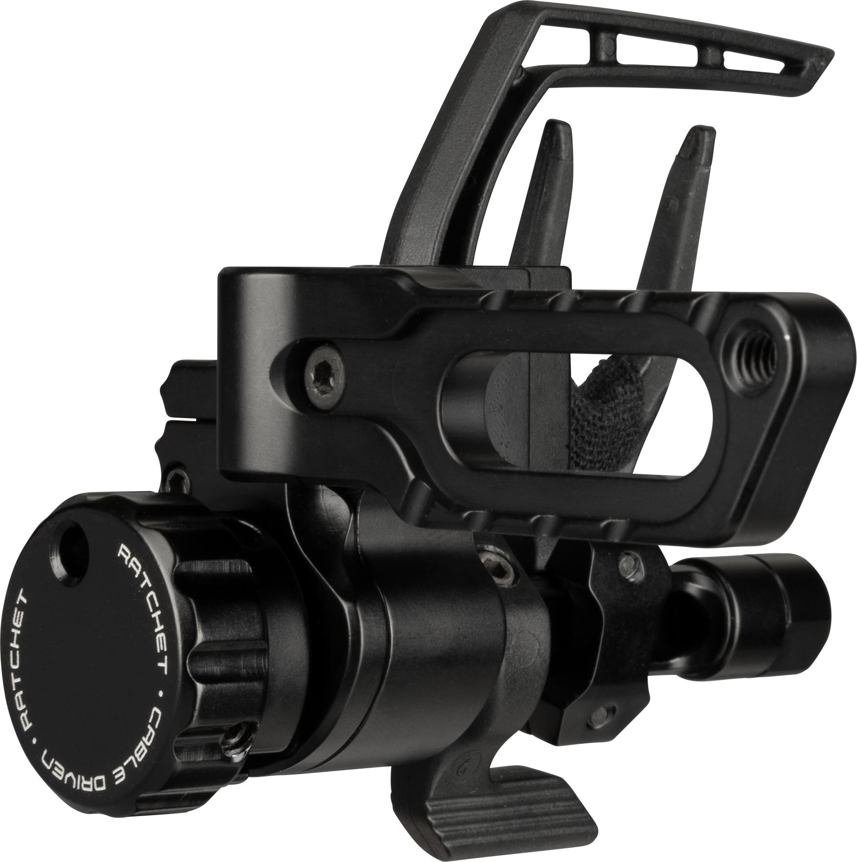 Die Ripcord Ratchet Cable Driven ist eine kabelgesteuerte Fallaway-Pfeilauflage für Compound-Bögen. Sie wird direkt am Kabel des Bogens befestigt und fällt beim Durchziehen zuverlässig in die Abschussposition – beim Loslassen der Sehne klappt sie vollständig weg, sodass der Pfeil ohne Kontakt mit der Auflage abfliegen kann.