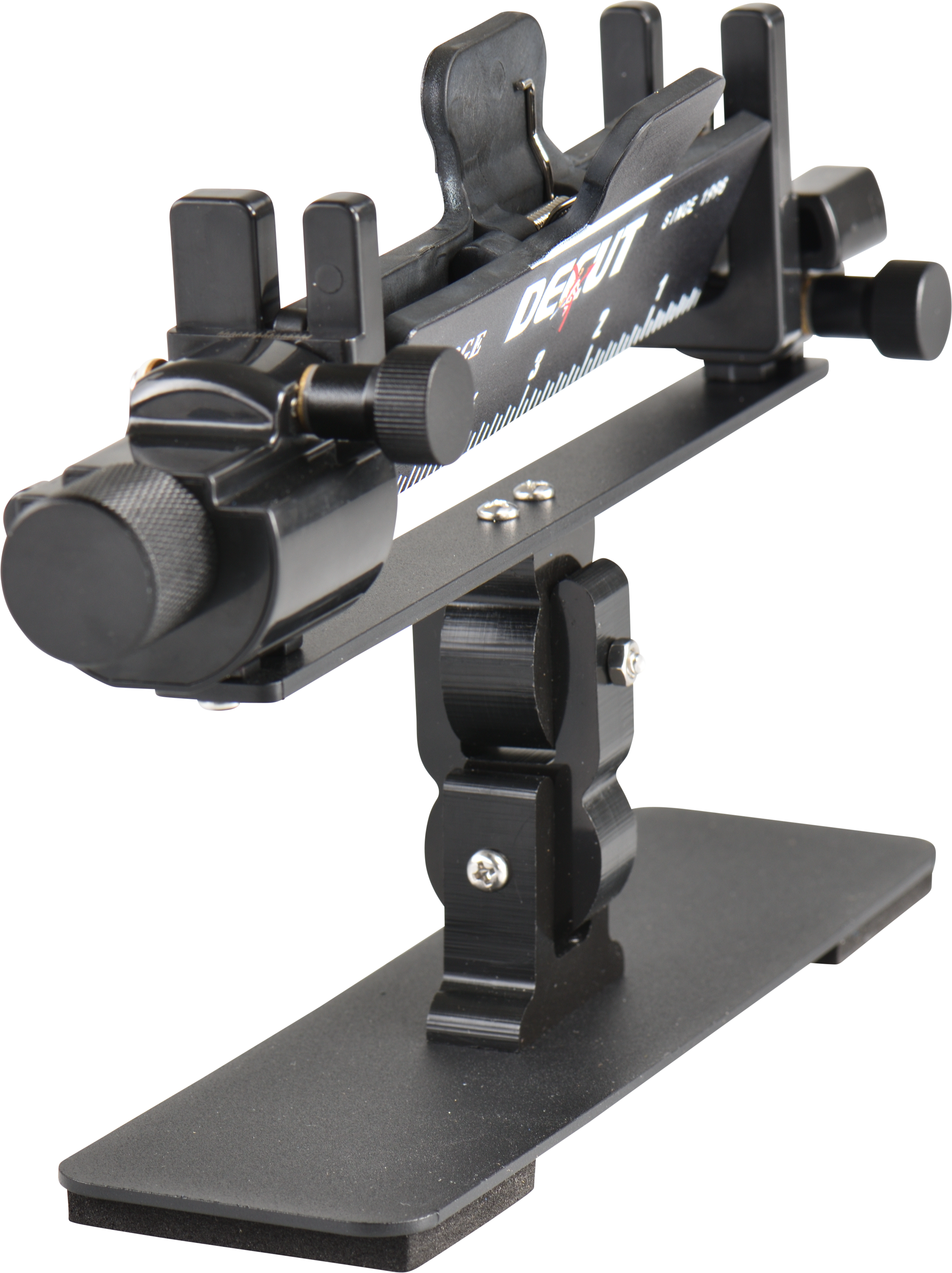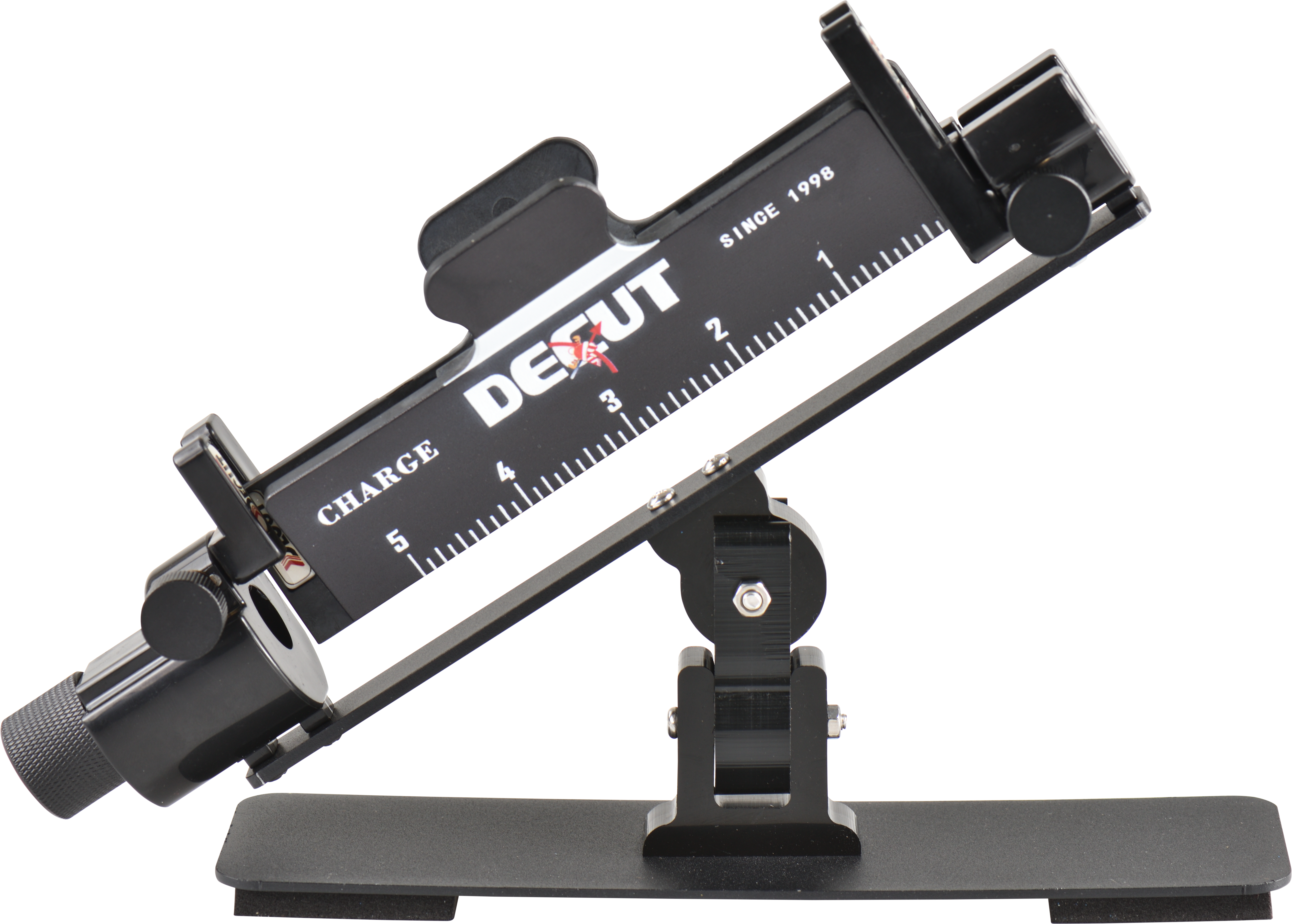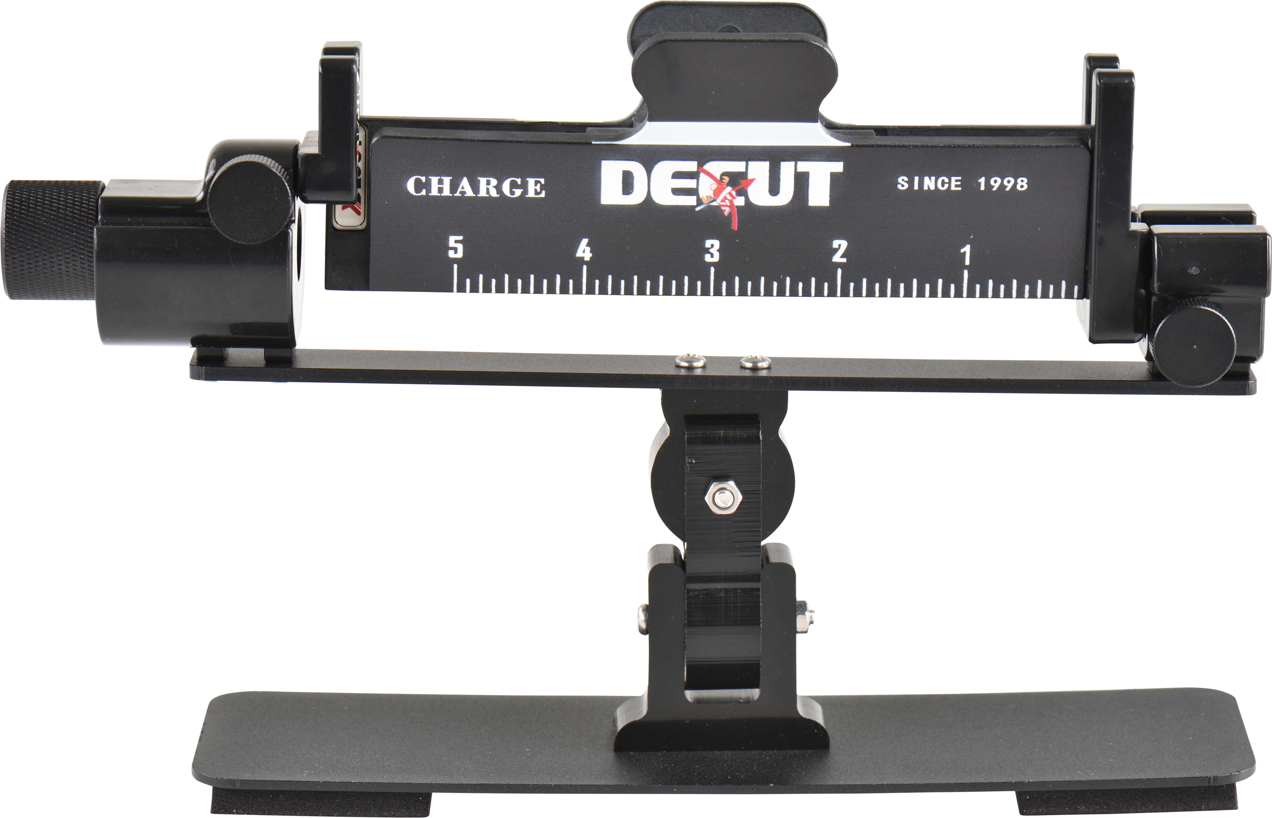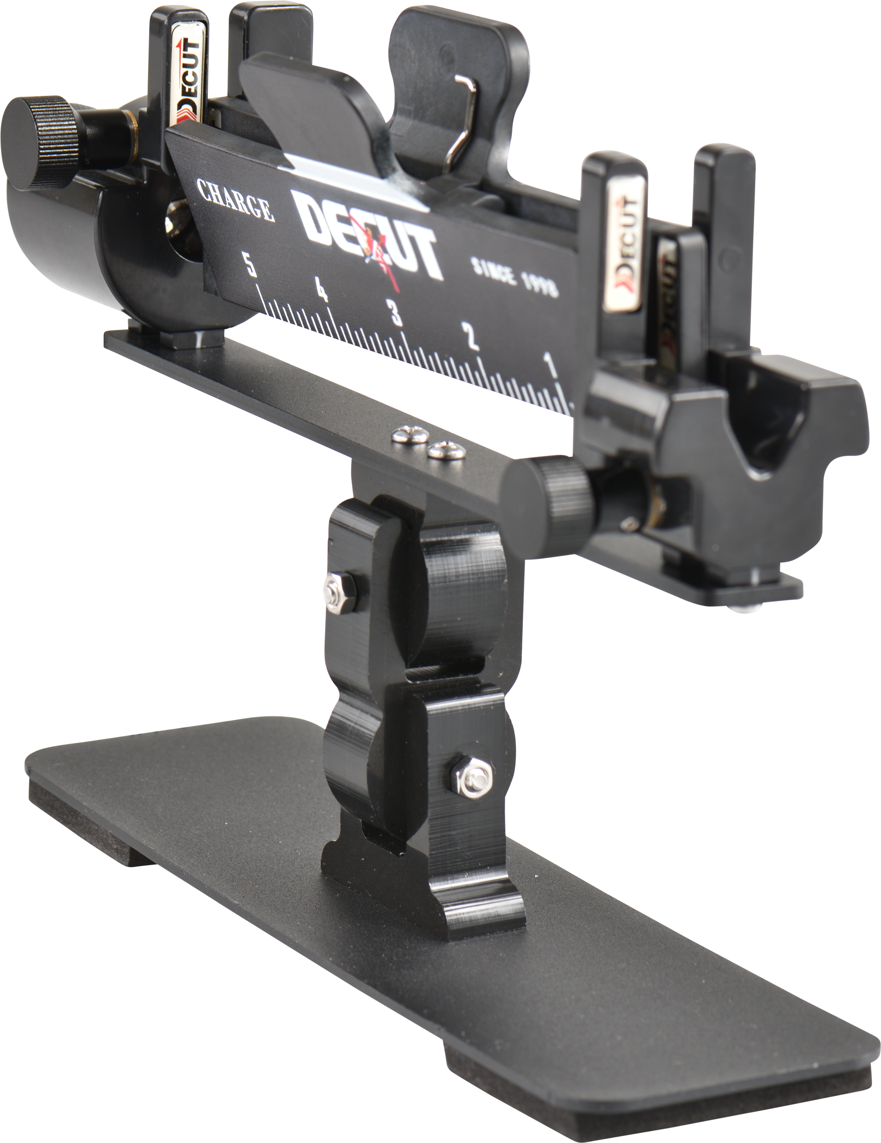 Das Gerät ist in Schwarz gehalten und gehört zur Charge-Linie von DECUT, einem auf Bogensport-Zubehör spezialisierten Hersteller. Es ist für den regelmässigen Einsatz in der Pfeilwerkstatt konzipiert.